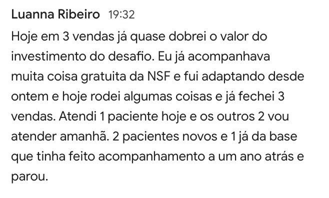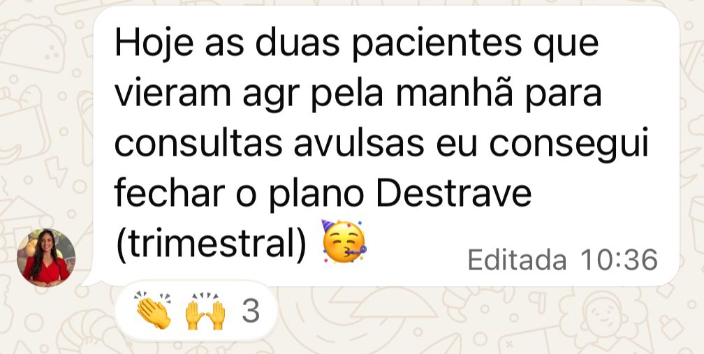 Gente, já agendei a terceira paciente no presencial essa semana. E hoje fechei um plano trimestral no presencial 💜👏